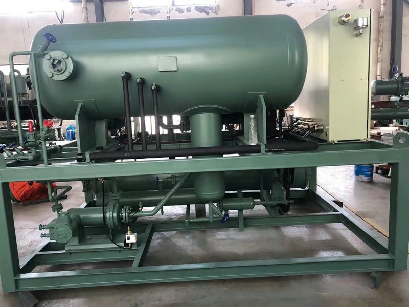 通過(guò)制冷劑泵(屏蔽泵)的升壓,把低壓循環(huán)桶中的制冷劑供給客戶(hù)蒸發(fā)器(冷量需求端);從蒸發(fā)器中出來(lái)的氣液混合物重新回到低壓循環(huán)桶進(jìn)行氣液分離后,純制冷劑氣體回到壓縮機(jī)。